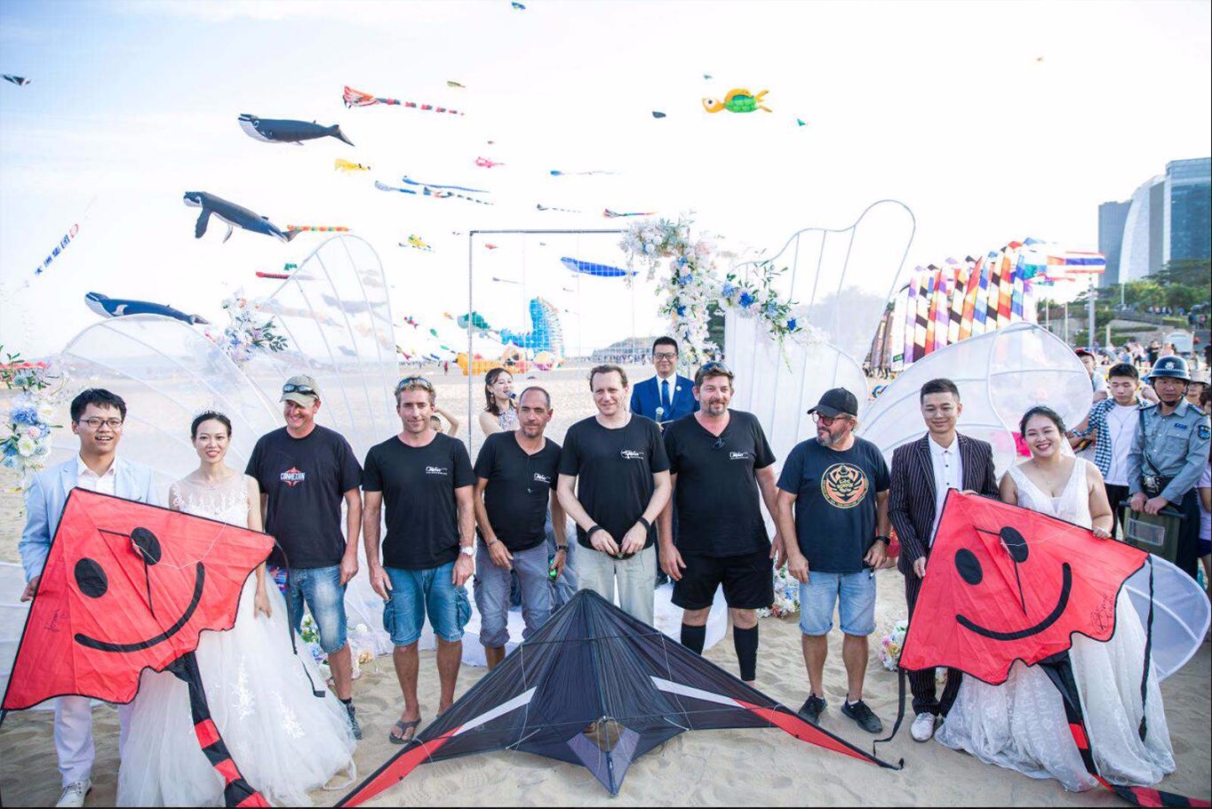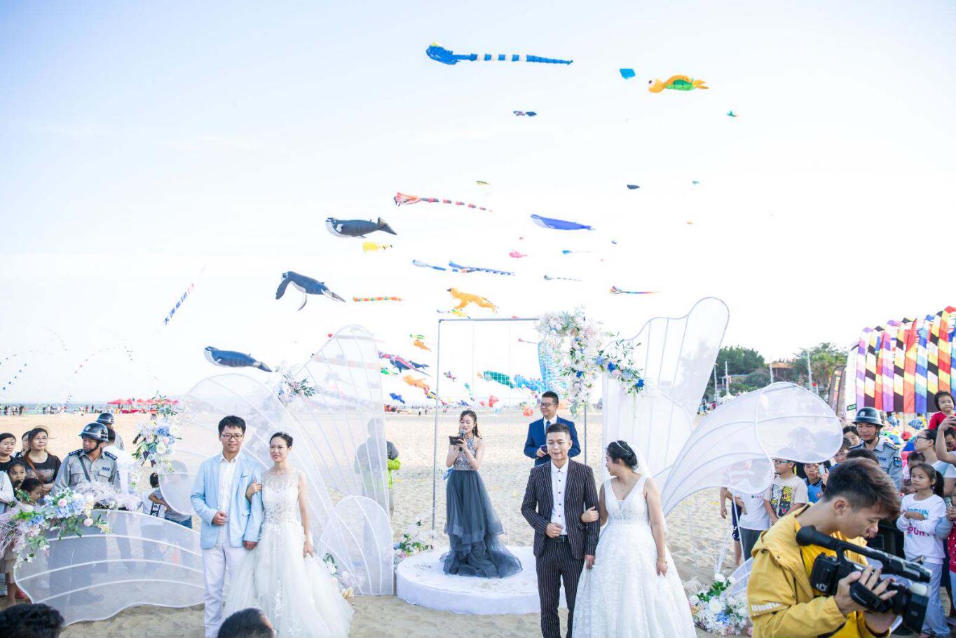 本次風(fēng)箏節(jié)最為溫馨的環(huán)節(jié)莫過于主辦方精心設(shè)置的風(fēng)箏婚禮,一對(duì)對(duì)新人在漫天彩鳶的包圍下,在大家的見證下,以風(fēng)箏為媒,舉辦了獨(dú)一無二的風(fēng)箏婚禮,收獲了滿滿的感動(dòng)與祝福。